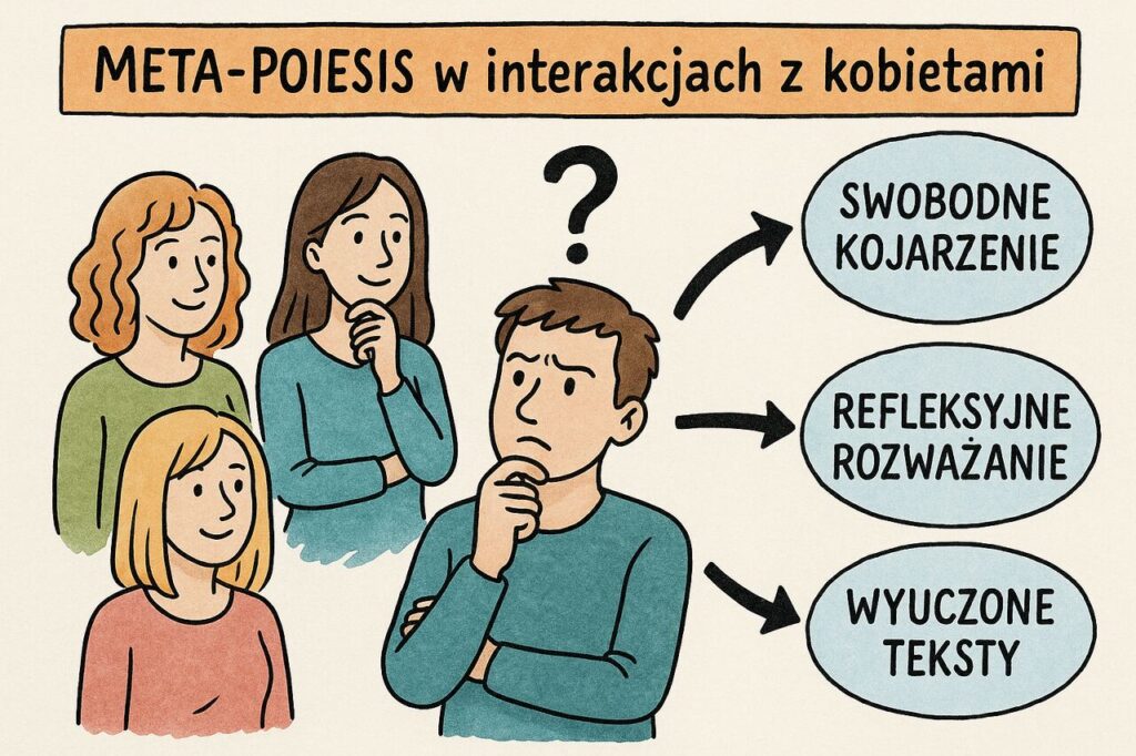 Meta – Poiesis to umiejętność, która wyrasta ze świadomości tego kiedy i jak angażować się w proces nawiązywania z kobietą relacji intymnej, a kiedy się wycofać. To także zarządzanie procesem nawiązywania z kobietą relacji, odkrywania unikalnych znaczeń, nadawanie znaczeń, odkrywanie kluczowych momentów, kreowanie tych momentów i odpowiednie reagowanie, które jest adekwatne do danego momentu.
