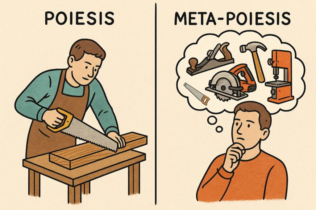 W tym miejscu przechodzimy do Poiesis które poprowadzi nas wprost do głębszego rozumienia Meta-Poiesis (Meta – Pojetyki)